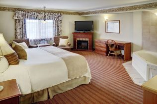 Spacious honeymoon suite set in a warm romantic atmosphere complete with king bed, and a corner jet tub. The washroom has his and her sink with a stand up shower stall. Round table with 2 comfortable high back chairs, electric fireplace for that special ambiance.